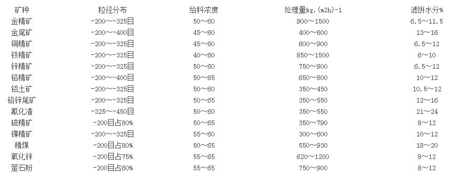目前已廣泛應用于礦山有色金屬、稀有金屬、黑色金屬,非金屬等精礦及尾礦脫水,化工行業氧化物、電解渣、浸出渣、爐渣的脫水及環保污水污泥廢酸處理等。物料細度從-200到-450目以及各種超細物料。